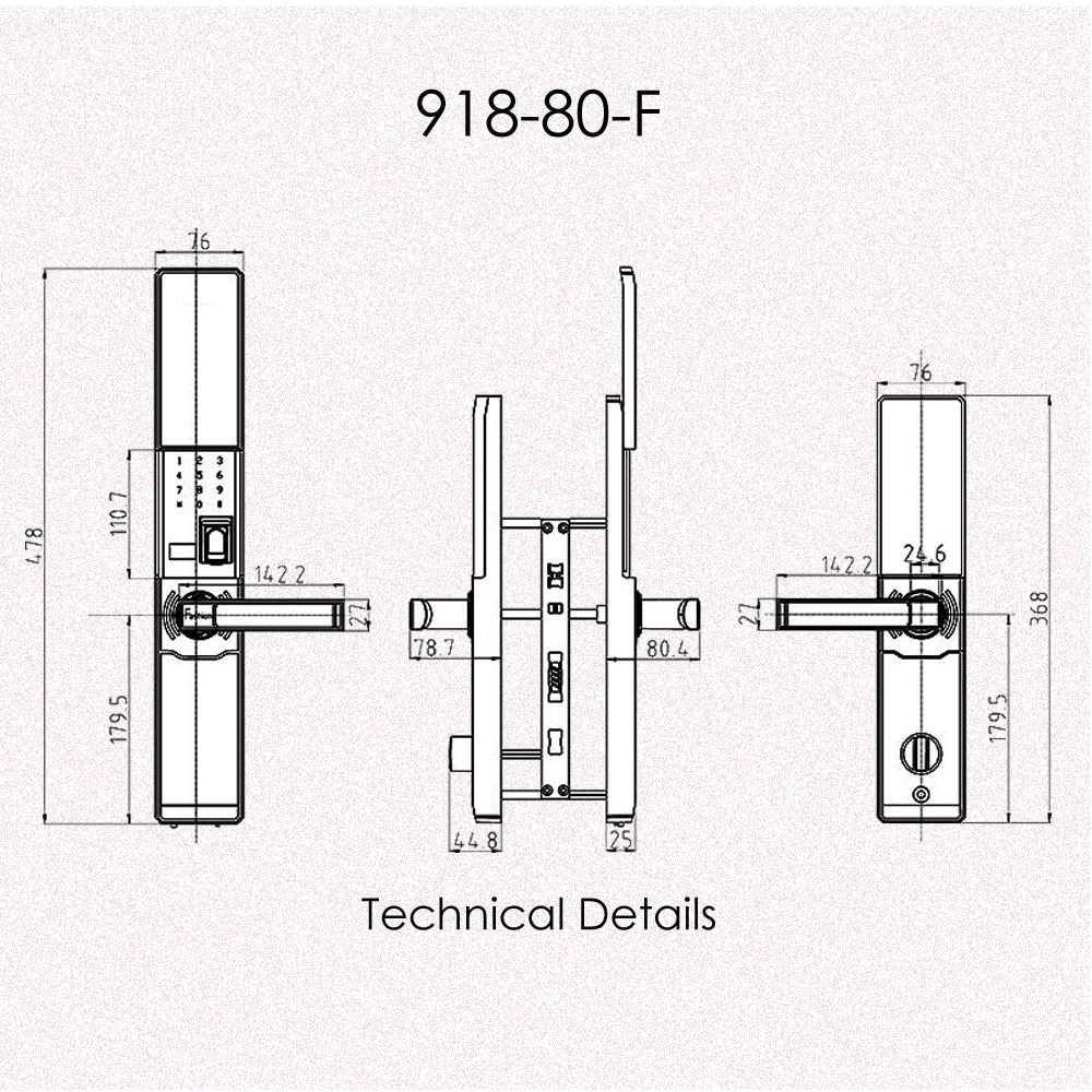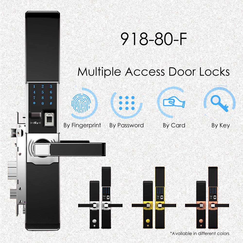 - Access ways: Fingerprint, Code, Card, Key